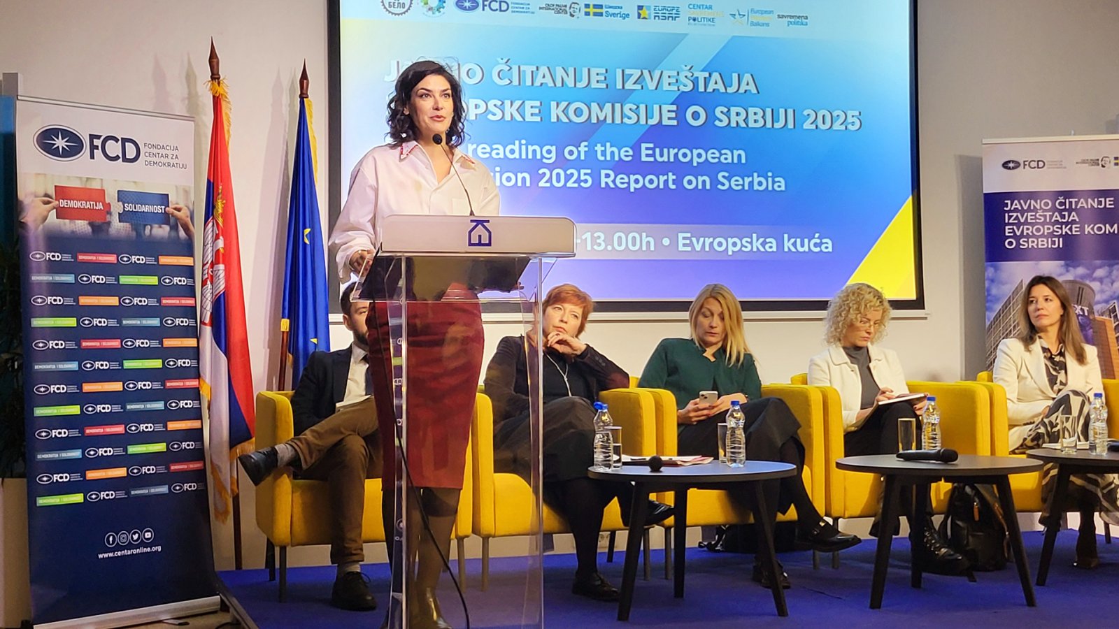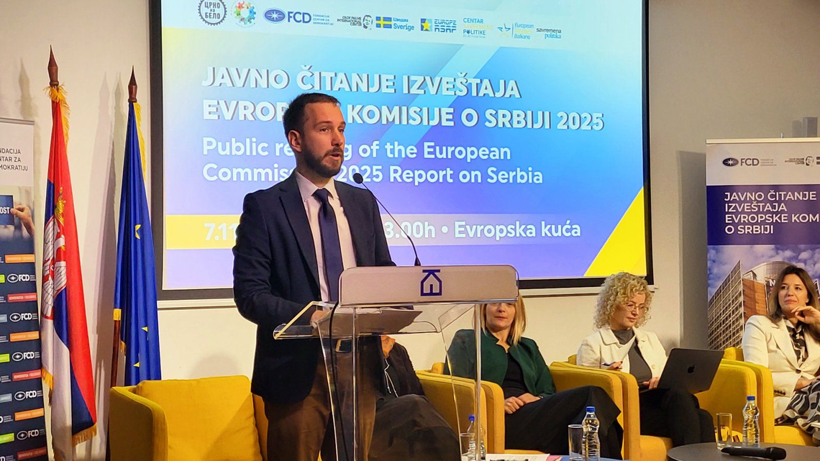 The European Commission correctly identified all the problems troubling Serbia, above all the deep and widespread political crisis, including accumulated issues in key areas – the judiciary, rule of law, freedom of assembly and the media, and the fight against corruption, participants of the “Public Reading of the European Commission Report on Serbia 2025” concluded. The event was held at the European House in Belgrade, organized by the Foundation Center for Democracy and the Center for Contemporary Politics.