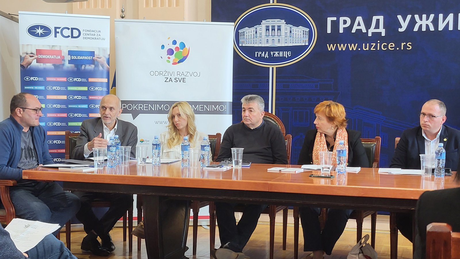 U panel diskusiji na temu „Integrisanje rodne perspektive u planiranju lokalnog ekonomskog i socijalnog razvoja“ govorili su: Slobodan Grbić, član gradskog veća za socijalnu politiku, grad Užice; Tijana Kostić, zadužena za pitanja rodne ravnopravnosti, grad Užice ; Jelena Leković, predsednica komisije za rodnu ravnopravnost, opština Nova Varoš; Marina Tucović, Ženski centar Užice; Jelena Prokić, Užički centar za ljudska prava i demokratiju; Sarita Bradaš, Fondacija Centar za demokratiju; Ivana Savić-Jovanović, Fondacija BFPE za odgovorno društvo; Jelena Žunić-Cicvarić, Užički centar za prava deteta.