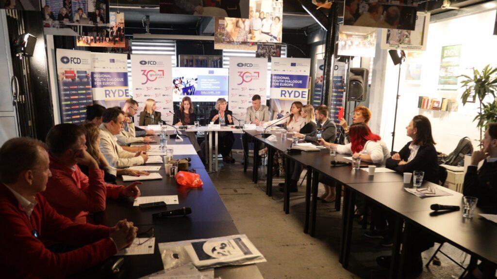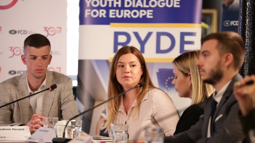The debate entitled ‘The Role of Youth in the European Integration Process of the Western Balkans’ was organised by the Democracy Foundation as part of the Regional Youth Dialogue for Europe (RYDE) project, funded by the European Union and supported by the Open Society Foundation. Ivana Stojanović from the Democracy Foundation moderated the discussion.