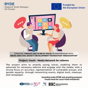 Naziv projekta: Youth – Media Network for reforms (Medijska mreža za reforme).